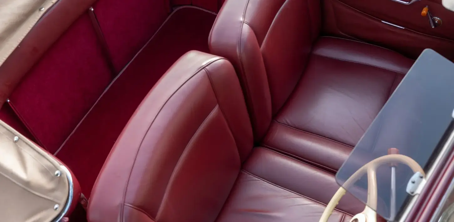 Finished in Bordeaux over an Oxblood leather interior with a beige convertible top
