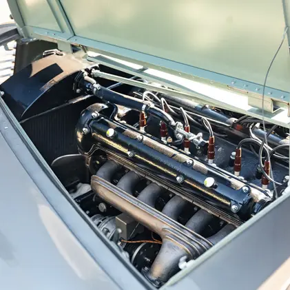 After 12 years of ownership, Mr. Allinger sold the Alfa Romeo in August 1969 to Alfred “Wayne” Williams of Moreno Valley, California. Mr. Williams drove the 6C for a few years before storing the car in 1974, and it remained carefully domiciled for many years. In 2010, after a remarkable 41-year period of single-owner care, Mr. Williams sold the cabriolet to Lawrence Zinkin of Northern California.