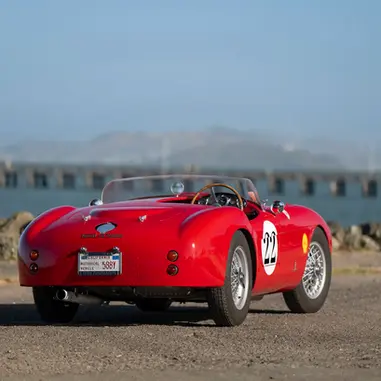 Set up to compete, the car is offered equipped with a Hall & Hall 3-liter engine, built in 2019, and mated to the numbers-matching four-speed manual transaxle, fitted with custom-made gears; the present de Dion rear axle is also a reproduction, and the car is fitted with a reproduction riveted aluminum fuel tank. The original, numbers-matching 2.0-liter Lampredi engine, rebuilt by noted Ferrari guru Patrick Ottis, as well as the previous de Dion rear axle, both accompany the car loose, as does the previous fuel tank, extra Borrani wire wheels, a removable roll bar, and other spares; factory build sheet copies; and even an owner’s manual.