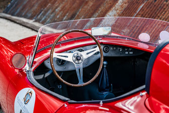 Inside, the spartan cabin features only the essential information that you’d expect from a competition car – revs, water temperature and oil pressure – and the twin side-exit exhausts come out on the driver’s side. From behind the thin wood-rimmed steering wheel, it’s therefore easy to evoke the 1950s road races in which these little OSCAs excelled.