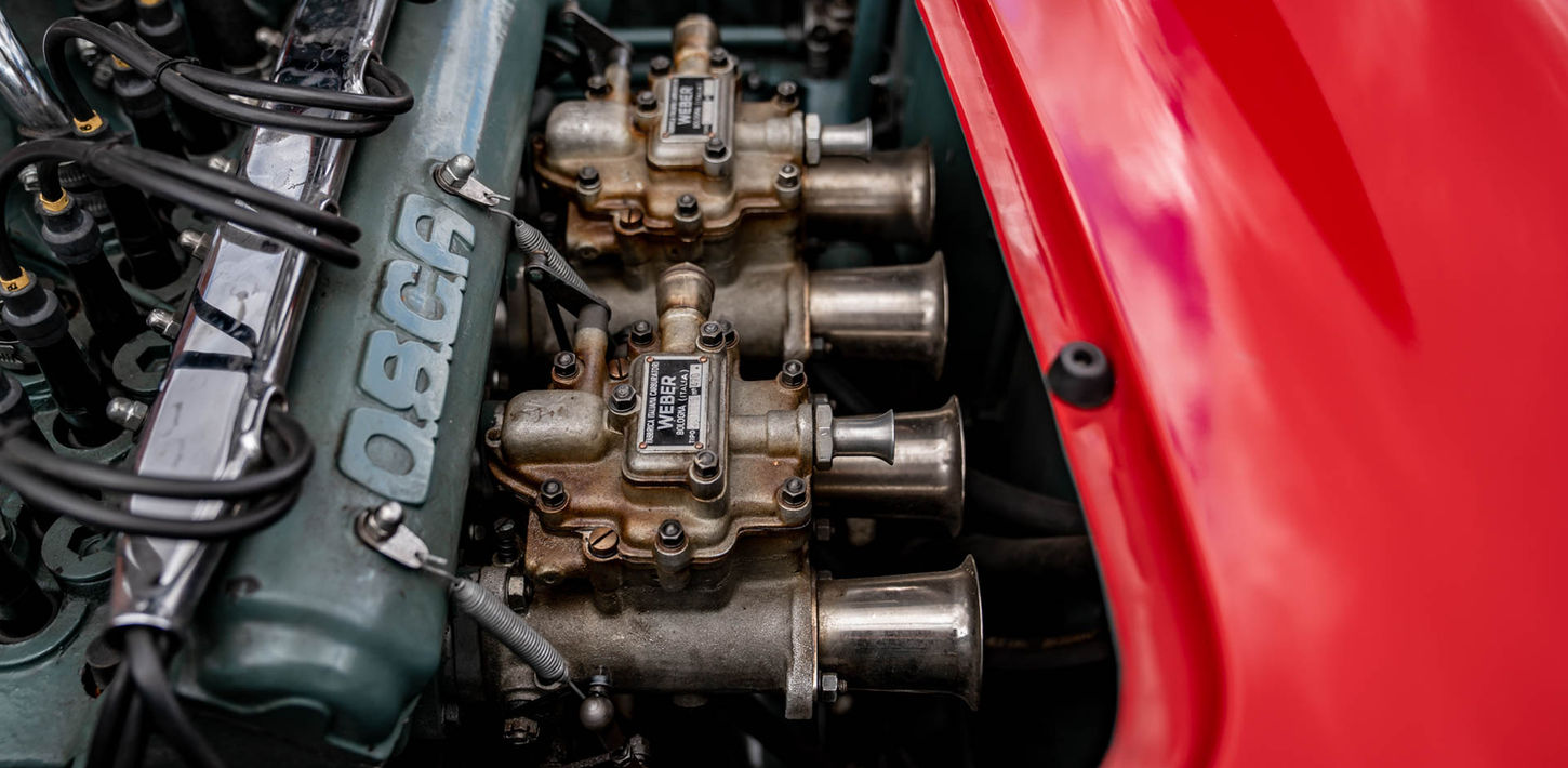The OSCA had been restored between 2009 and 2014 by Autofficinaldo and Carrozzeria Garuti in Italy, and an authentic 1490cc twin-spark engine was built by the world-renowned Hall & Hall in Lincolnshire. Numbered ‘1500N’, this jewel of a powerplant produces nearly 120bhp – enough to provide strong performance in a car that weighs only 650kg. It drives through a correct ZF gearbox, which was rebuilt in 2015.