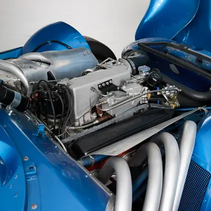 The engine was backed by an aluminum four-speed close-ratio gearbox, with synchro-mesh in all forward gears. The unit weighed in at just 65 pounds. The differential was a cast unit made of low-weight alloy, and it featured quick-change gears. While final drive was set to 3.55:1, the quick-change unit allowed the ratio to be changed anywhere from 2.63:1 to 4.80:1 depending on usage needs.