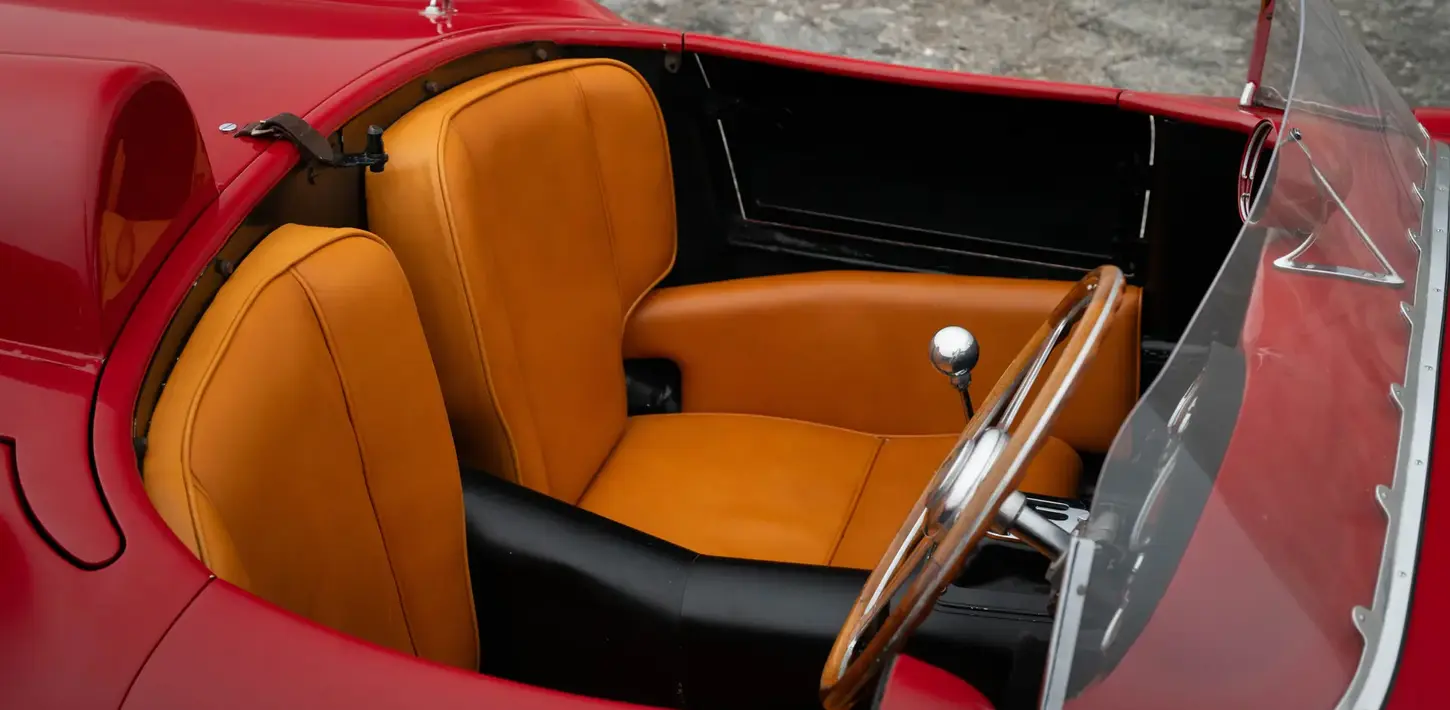 The idea of “hot-rodding” was very much alive in California during the 1950s, and looking to exploit the TRC’s sweet-handling chassis, John von Neumann approached Ferrari to build him a more powerful “hot-rod” version. Enzo once again turned to the race-proven Tipo 625 engine as the most expedient way to achieve his American customer’s goal. Von Neumann would ultimately order just two of these Italian hot-rods, and the extra engine capacity resulted in an impressive 25% increase over the standard 500 TRC’s output of 180 brake horsepower at 7,000 rpm. It should also be highlighted that Ferrari’s race department took this as inspiration and further developed the larger-capacity four-cylinder TRC into the legendary V-12-powered 3-liter 250 Testa Rossa. One of the earliest prototypes (0704) started life in a four-cylinder guise with a TRC-derived chassis, while the other (0666) looked virtually identical to the TRC. Ferrari took notice of how successful the 500 TRC was in its smaller engine classes on the track and knew they had the formula for a winning car with a larger engine transplant. Thus, the genesis of Ferrari’s greatest sports racer, the 250 Testa Rossa, can be found directly in the 500/625 TRC.