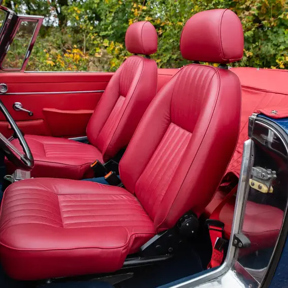 On offer here is a 1962 Alfa Romeo Spider beautifully presented with dark blue coachwork, red leather upholstery and dark blue carpets. The colourway perfectly complements the coachbuilt body by Carrozzeria Touring. In 2010, this example was acquired by the restoration specialists Piero de Marco Collection Cars in Lecce, Italy, showing just 42,000km. Reported to have an exceptionally solid body, it was treated to a detailed restoration, which included an engine and carburettor overhaul, a new soft top, and a full interior retrim in striking red leather. The restoration was completed in December 2012, after which the car was registered in the name of the workshop’s proprietor. In 2013, the Spider was sold through a respected Alfa Romeo dealer in Germany to a new owner, who commissioned further servicing and mechanical works totalling around €5,000.