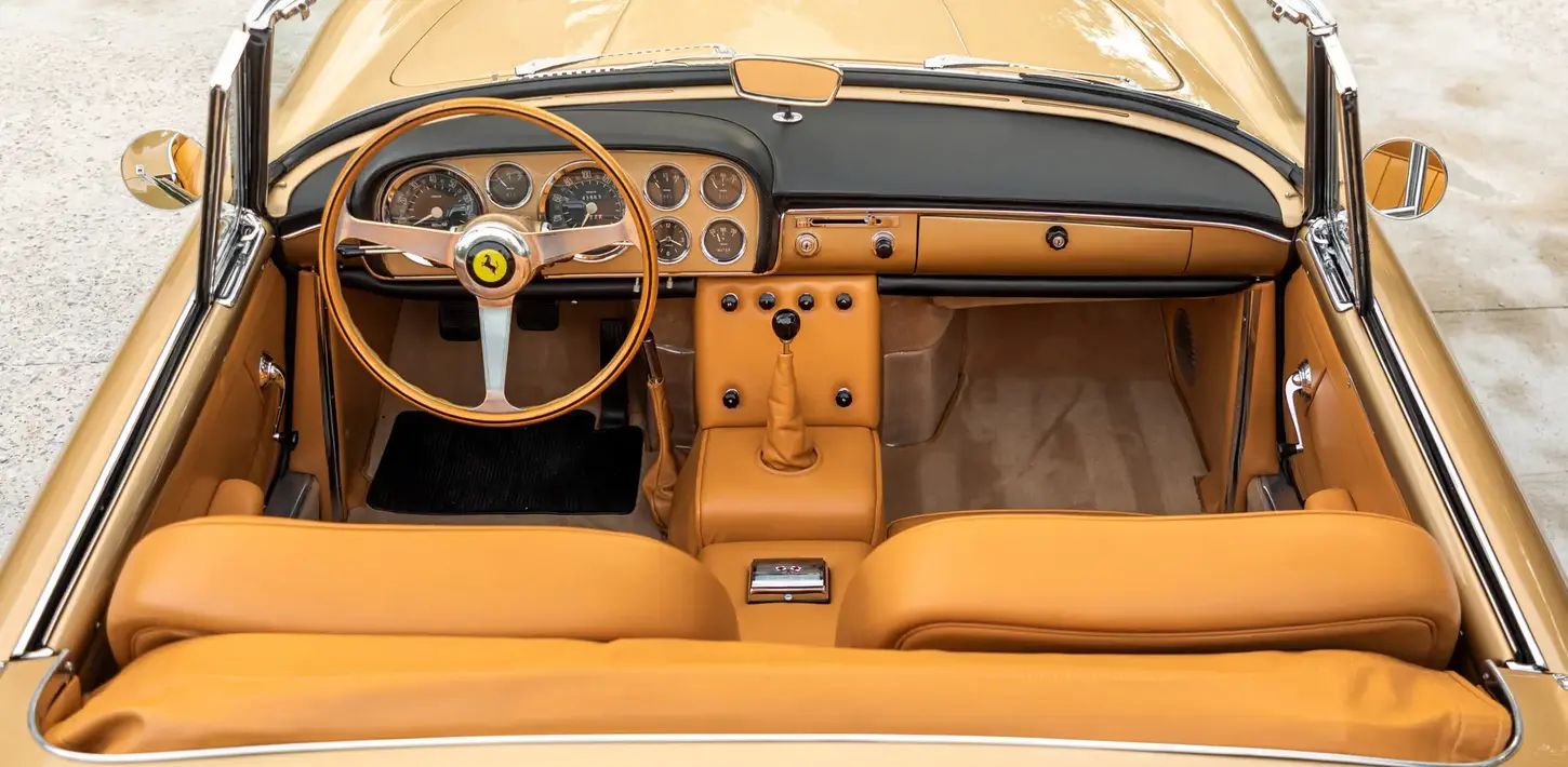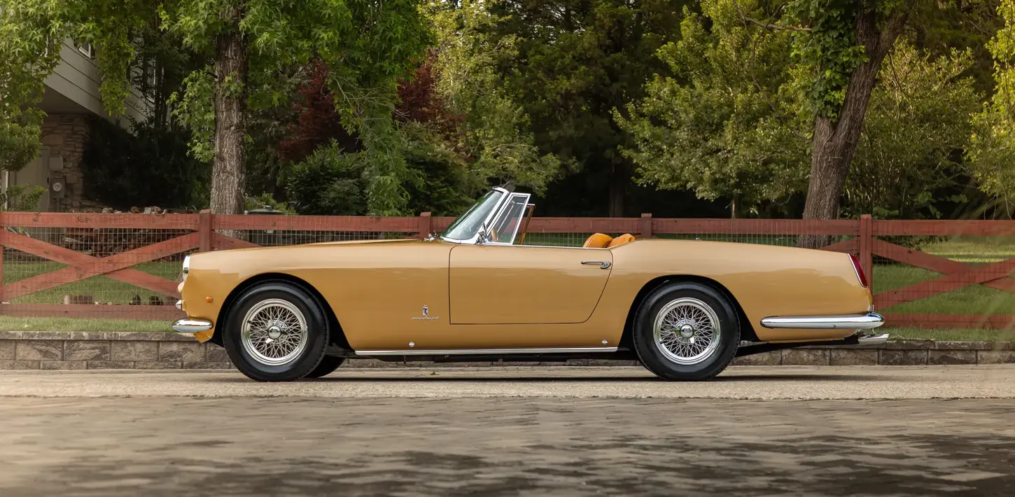 Considered among the most elegant of Ferrari’s open-top tourers, the 250 GT Cabriolet Series II is equally enjoyable on long coastal roads as it is winding through hillside switchbacks. Chassis 3091 GT, wearing its rare and factory-correct Oro Longchamps over Naturale, accompanied by a factory hardtop and toolkit, and certified by Ferrari Classiche in 2024, now offers a new owner the opportunity to experience a landmark Prancing Horse.