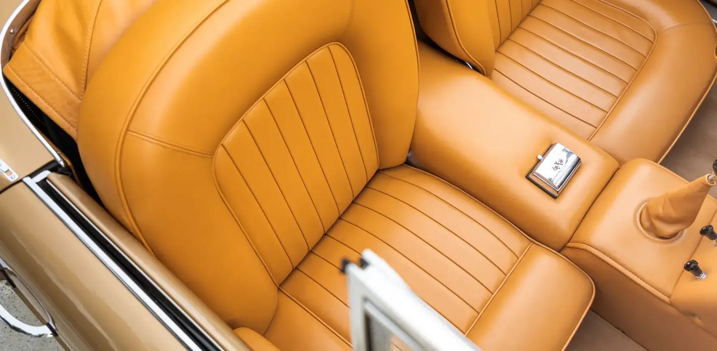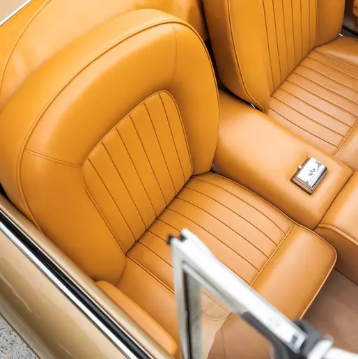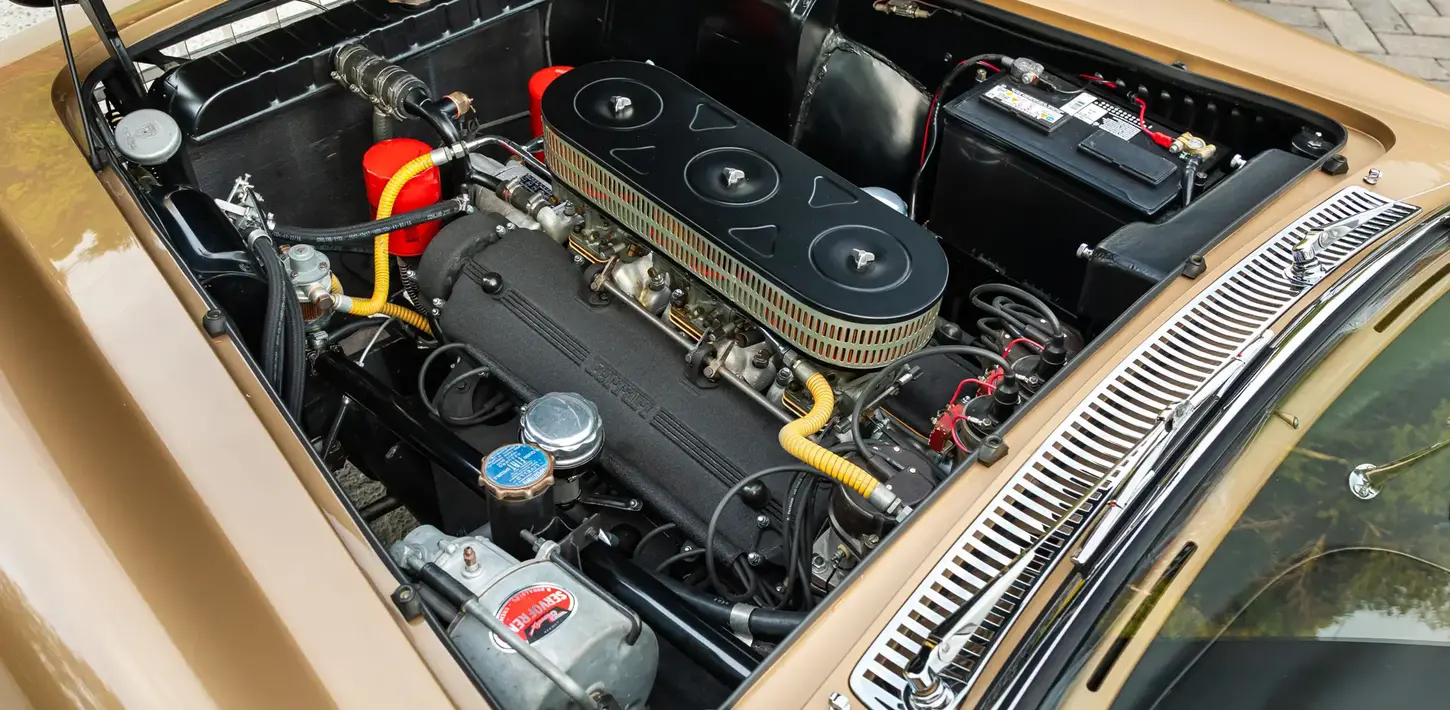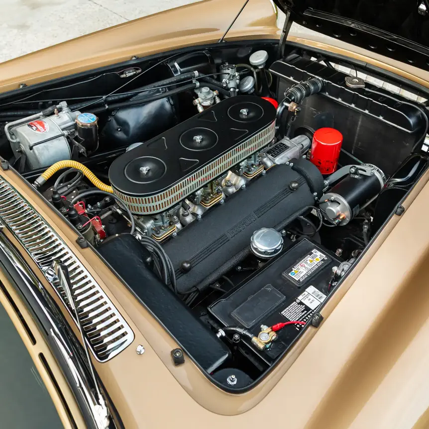 In 2016, this owner would begin a total restoration of the cabriolet back to its original livery. Danny Bell of Great Barrington, Massachusetts was enlisted to fully strip and refinish the Pininfarina bodywork in its factory-correct Oro Longchamps, while Johann Merhoffer retrimmed the interior. Work was completed in 2019, and in 2020, Paul Russell and Company was tasked with rebuilding the engine, gearbox, and overdrive, as well as performing work on the brake system and suspension and resealing the steering box.
