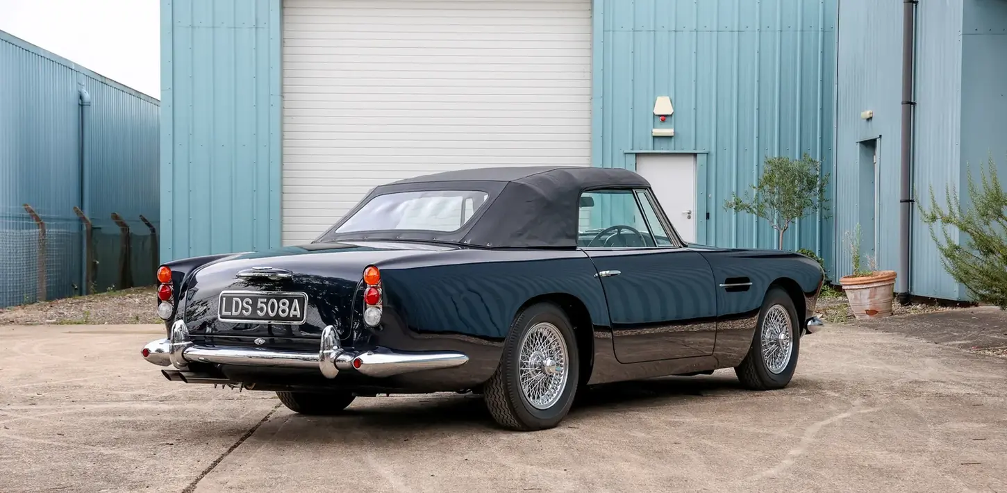 In 1961, Aston Martin unveiled a convertible version of the DB4. With just 70 produced, the DB4 Convertible is one of Aston Martin’s rarer models. Delivered on 19 July 1963 to Aston Martin of Brooklands, Weybridge, chassis DB4C/1173/R was a very special example of the Series V Convertible. It left the factory in the stunning colour combination of Midnight Blue over a Red Connolly leather interior, complemented by optional chrome wire wheels and a Powr-Lok 3.31:1 differential. But what really set it apart was its powerplant, being the only example of its type to be fitted with a DB4 GT-specification engine by the Aston Martin factory.