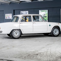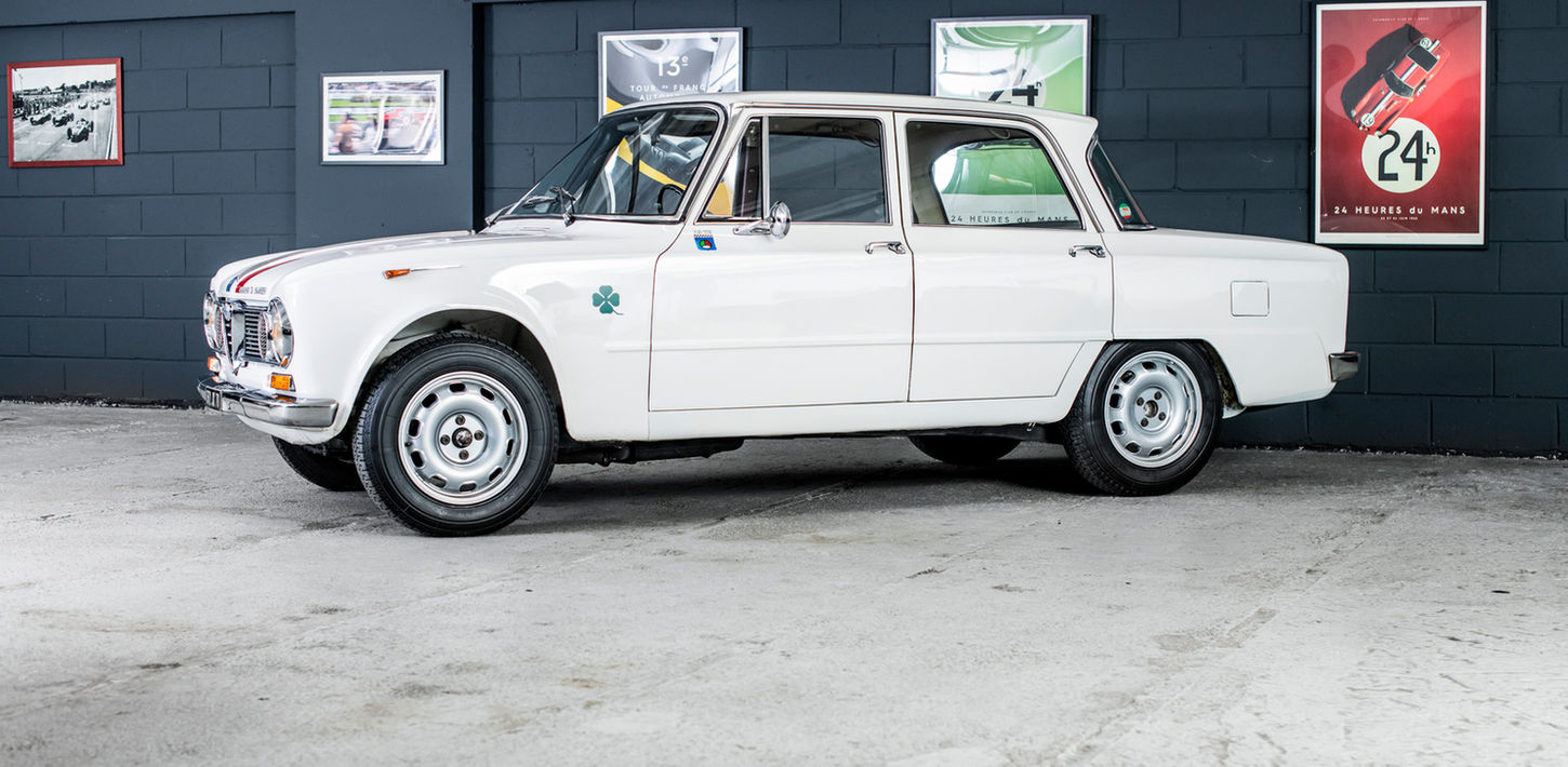 What is the sporty version of a sports sedan? To a race car, that goes without saying. That's exactly what the Giulia Ti Super is, which takes the qualities of the 1900 Ti Super to the extreme by pushing the concept to the extreme: lightweight bodywork, a vitamin engine, a more rigid low-profile chassis and 189 km/h top speed. Built to only 501 units over two years, the most desired - and falsified! - of Giulia is nowadays extremely rare. We have found one of the authentic copies still in circulation. It is under its Italian name, Quadrifoglio, that ti super will be universally known. Paraphrasing what Heny Ford said about the Model T: the Giulia Ti Super was delivered in any color, as long as it was white. Of the 501 units produced, only two had another shade: *595135* red, and *595416* grey. It is necessary to immerse oneself in the nomenclature of the Alfa Romeo of the Glorious Thirty to better understand the specificity of this car. If the term "Super" refers to a rich version and "Ti" (Turismo internazionale) to a sporty one, what is the meaning of "Ti Super"? A luxury model with a doped engine? Lost! Lost! In this case, "Super" does not indicate a level of finish, but reinforces the sporty side suggested by the acronym Ti. A "super sports car" in short. The 1900, whose Super had 90 hp and the Ti 100 and Ti Super 115 hp, had already been designed in this way. At the launch of the Giulia on 27 June 1962, Alfa Romeo understood that it had a very interesting asset to highlight the idea of the "family sedan that wins races", a slogan that had accompanied, not without success, the release of the 1900. More powerful than the Giulietta, much more agile than the 2600 6-cylinder, which indirectly took over from the 1900, the Giulia is designed to seduce with its original and aerodynamic design well ahead of a competition that, at best, is inspired by the Americans, like Fiat and its 1300/1500. On April 24, 1963, Alfa Romeo added spice to its recipe by unveiling the Ti Super on the Monza racetrack.