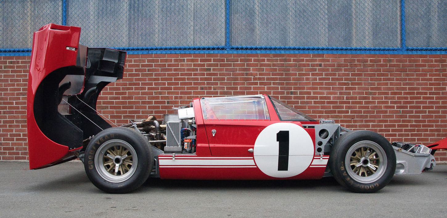 This example was completed in 2020 and is outfitted with a host of exceptional features including a Jimmy Tucker built FE 427 medium riser cast iron block with aluminum heads and intake, single Holley 4-barrel carburetor, and dry sump oiling system, linked to a magnesium case Holman-Moody Kar-Kraft T-44 4-Speed transaxle. In addition to the numerous construction details surrounding this car, the build consists of Halibrand magnesium wheels with knock off hubs, and 2.260” stainless-steel “bundle of snakes” headers.