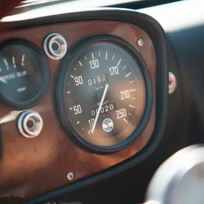 The set of 13-inch Cromodora wheels are presently shod in Kumho tires, and at the rear track these fit nicely under the fiberglass body’s slightly widened fenders. As the consignor reports that this extremely uncommon Vallelunga has traveled just 4,000 kilometres since completion of its comprehensive restoration, it would be a tremendous and exciting prize for any collector of advanced and attractive niche Italian sportscars.