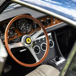 To the cognoscenti, the epitome of the gentleman’s Ferrari is the 330 GTC. Slotting in between the four-seat 330 GT 2+2 and Ferrari’s then-flagship 275 GTB, it combined the aspects of both cars to make for an exceptional driving experience. Utilizing the same steering, suspension, and transmission as the 275 GTB, at its heart was a 4.0-litre V-12 engine, good for transporting the 330 GTC to 60 mph from a standstill in seven seconds and onwards to a top speed of 150 mph. As the 330 GTC was a two-seater, its wheelbase was shorted by 10 inches over the 330 GT 2+2, making it much more dynamic to drive yet still entirely practical for two passengers, with copious boot space and a rear parcel shelf behind the seats.