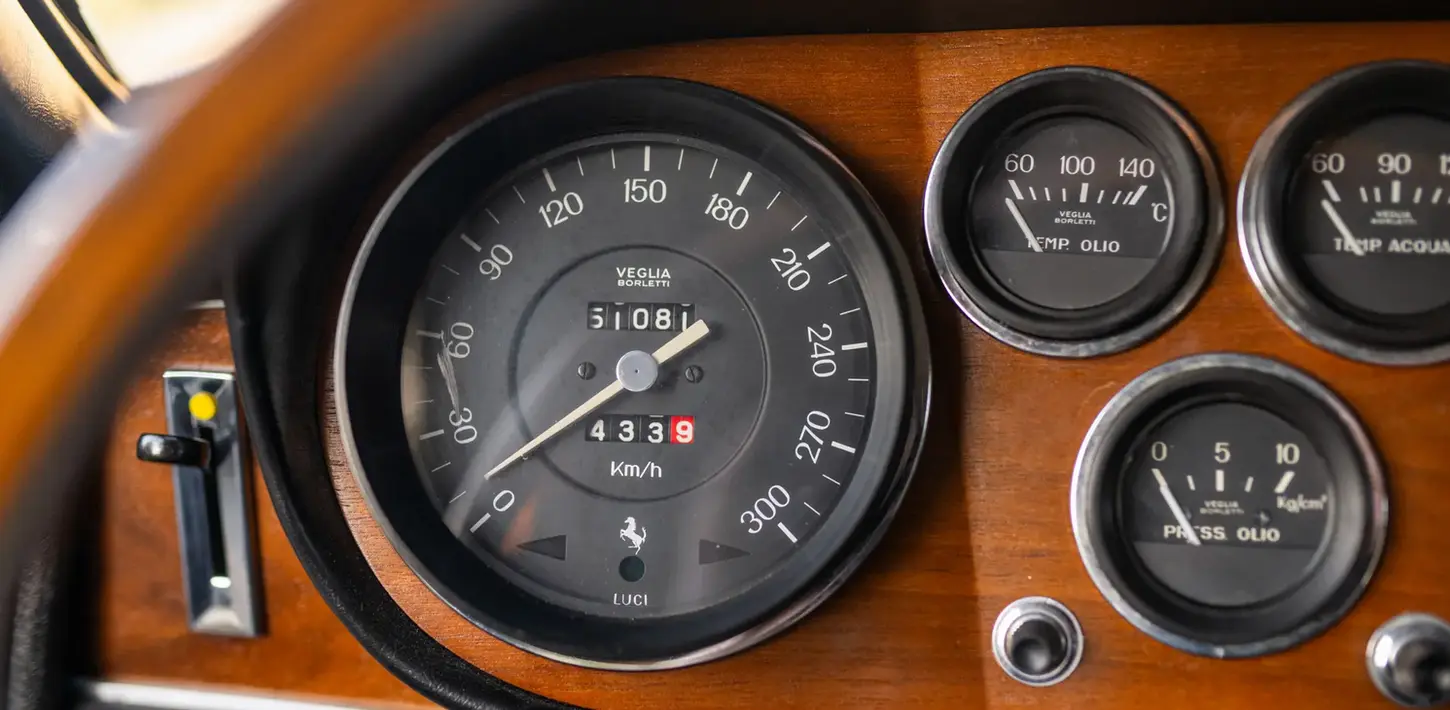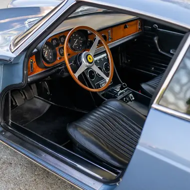 Headlining the car’s credentials was its 4.0-liter Colombo V-12 engine, producing 300 horsepower and endowing it with remarkable performance for such a sophisticated grand tourer, reaching 60 mph from a standstill in under seven seconds on its way to a 150-mph top speed.