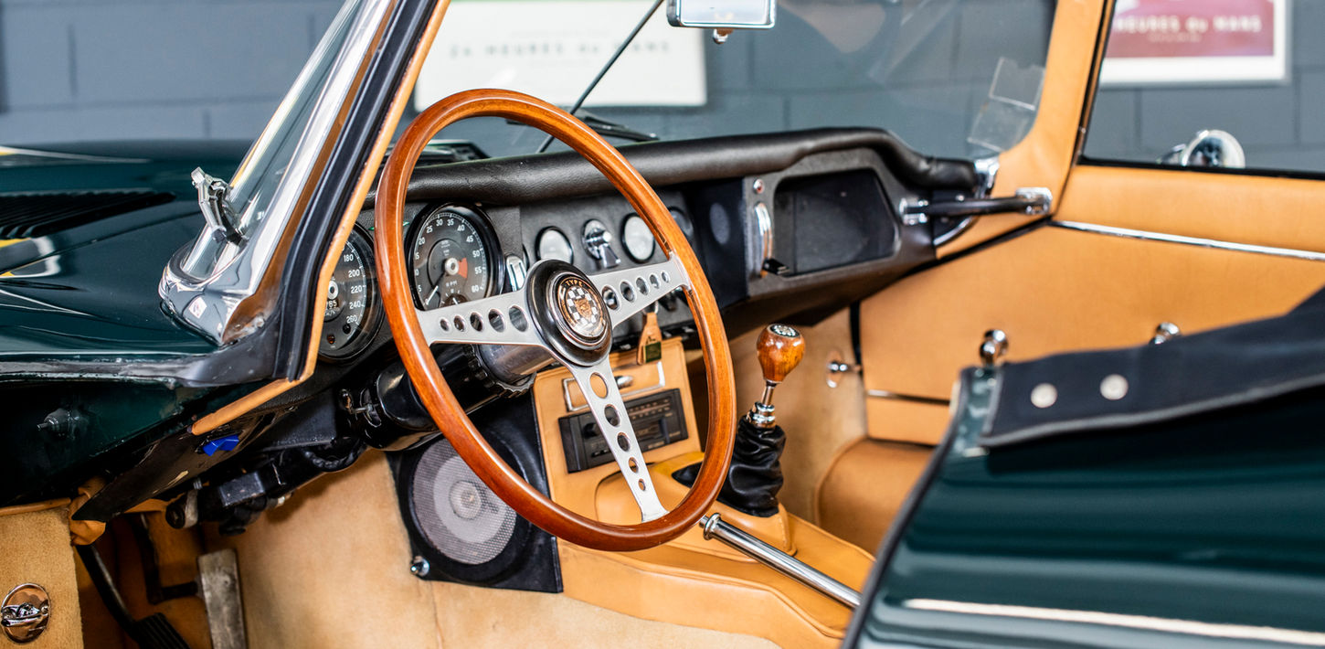 We trace it back to the late 1980s, when it was owned by John D Warner in Ottawa, Ontario, not far from Montreal. It was in 1990 that the current owner acquired it and brought it back to France. It has been a source of great pleasure amidst his collection of Jaguars, accompanying him on numerous rallies and receiving meticulous care, as evidenced by the regular technical inspections and expert reports in the file. Its engine was restored around 20,000 km ago, and the car boasts a finish and patina that would put many recently restored cars to shame. This Roadster is a real pleasure to drive. If you are looking for an E-Type suitable for everyday use, which has retained all its original features, you will struggle to find a better example than this one.