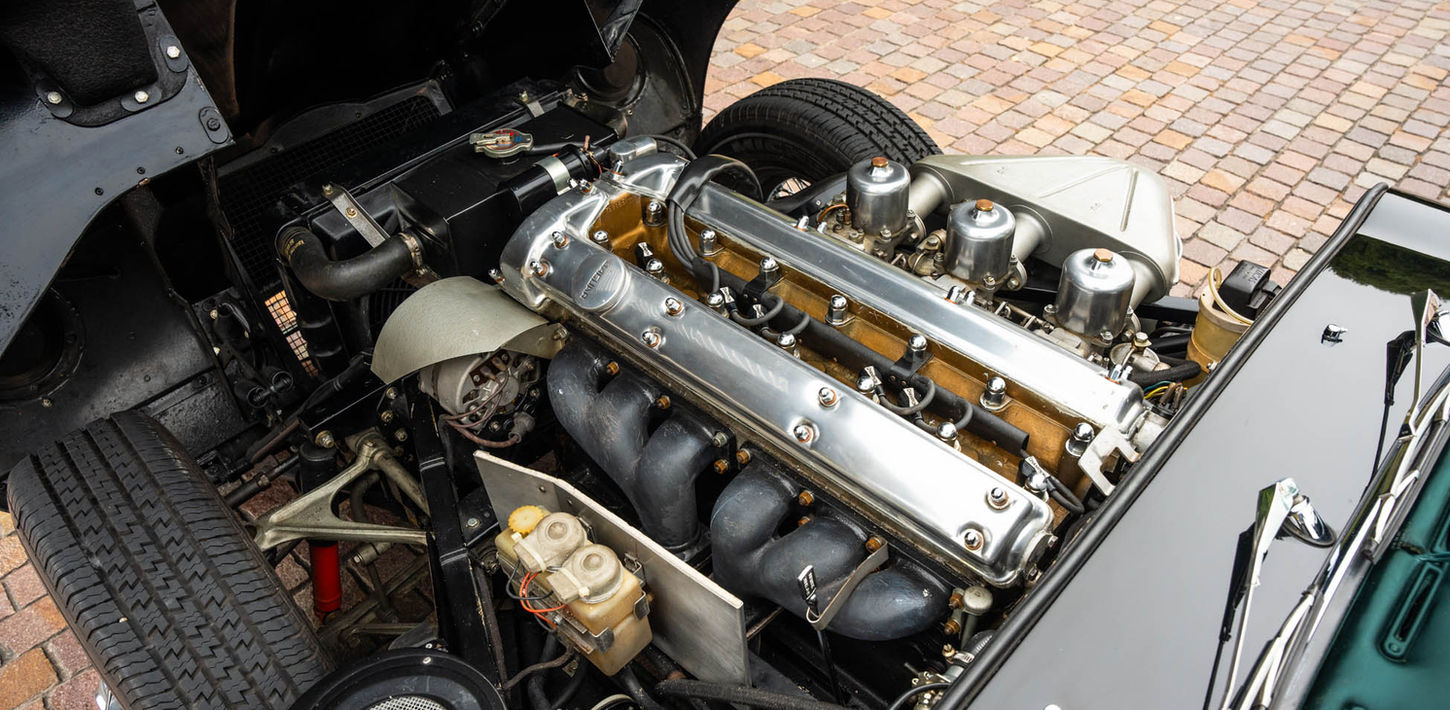 The 4.2-liter inline-six features triple SU carburetors. The current owner is said to have replaced the camshaft.