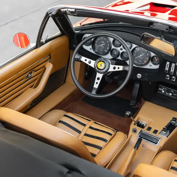 Toney was a longtime member of the Ferrari Club of America and a regular attendee of club events until his passing in 2002. Despite this, Toney only showed his Daytona Spider twice; first at the Ferrari Club of America Annual Meet at Monterey in 1994, and again at the Rodeo Drive Concours d’Elegance in 1997. Toney passed away in 2002 but the car would be kept by his family until 2017, at which point it was consigned to RM Sotheby’s Monterey auction. At that point, the car was sold to a well-known collector based in the United Kingdom. That same year, the car was granted Ferrari Classiche certification, confirming that the car retains its original chassis, engine, and bodywork, and is fitted with a replacement gearbox of the correct type. In 2018, the car received a full service at Joe Macari in London which also included adding a number of upgrades for overall drivability, including an upgraded aluminum radiator, suspension, sports exhaust, starter motor, and alternator, along with new Avon tires. This work totaled £48,019.68 and the invoices for this work can be found in the car’s history file. Later, the car would receive a professional repaint from Charles Pozzi, the official Ferrari distributor in Paris, France. Remaining in Europe until 2024, upon its purchase by the consignor, the car was repatriated to the United States shortly thereafter.