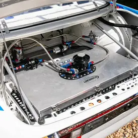 Fully plumbed-in diff cooler pump, and rear wheel arch-mounted radiator. These modifications are expensive but essential for reliability in endurance events