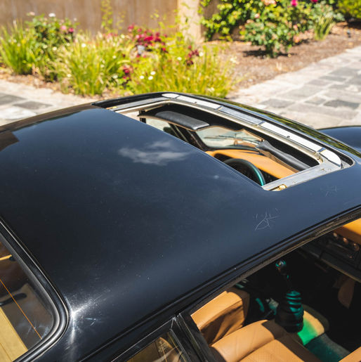This 1975 Porsche 911 Carrera has been refinished in black over a tan interior and is powered by a replacement air-cooled 2.7L flat-six that has reportedly been modified with Mahle cylinders, JE 9.5:1 pistons, Elgin camshafts, and a 911E cylinder head with twin-plug provisions. Additional equipment includes a five-speed manual transaxle, staggered-width 15? Fuchs wheels, Carrera-style brakes, a 22mm front sway bar, 26mm rear torsion bars, Bilstein shocks, a power-operated sunroof, power windows, front and rear spoilers, a Sony CD stereo, and SSI heat exchangers. This 911 Carrera was acquired by the current owner in 2016 and is now offered on dealer consignment with a tool roll, a jack, partial service records, and a clean California title in the current owner’s name.