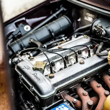 Finished in the correct Faggio AR516, with its Velluto Grigio City interior, one of the rarest color combination, this particular GT 1800 remains in stunning condition and with a very famous history.