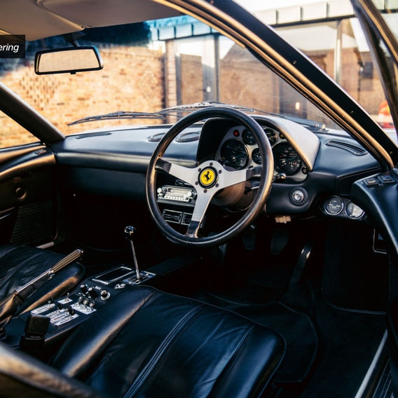 This RHD example was ordered new via Maltin Car Concessionaires on the 27th July 1976 and was delivered to its first private owner Mr Peter Pearce Esq located in Andover, UK in January the following year and was specified in a most tasteful Argento Auteil. Additionally it was ordered with a metallic paint, a spare alloy wheel and air conditioning. During its early life it was maintained with no expense spared via the supplying dealer and in circa 1982 was repainted in Rosso Corsa over. In October 1983 it was purchased by its longest standing owner, Mr Alan William Woodcock, who remarkably kept the car until 2007. During his ownership period it was maintained fastidiously via a number of well-respected specialists.