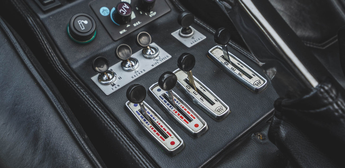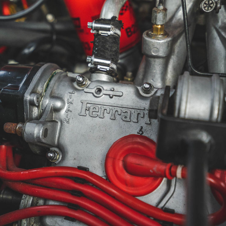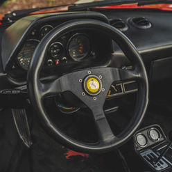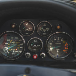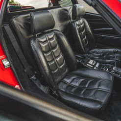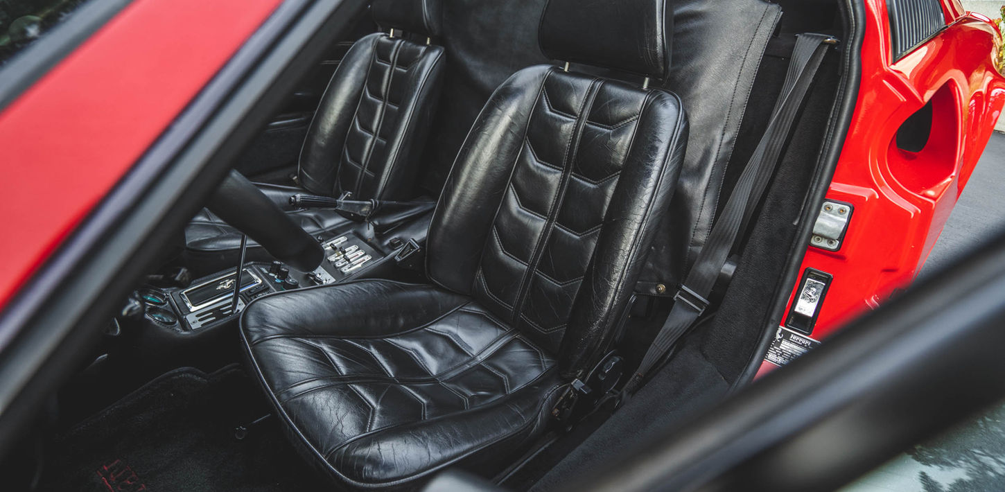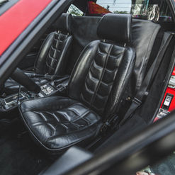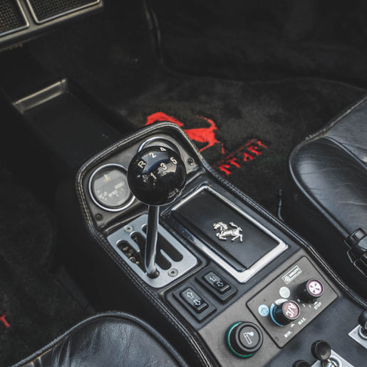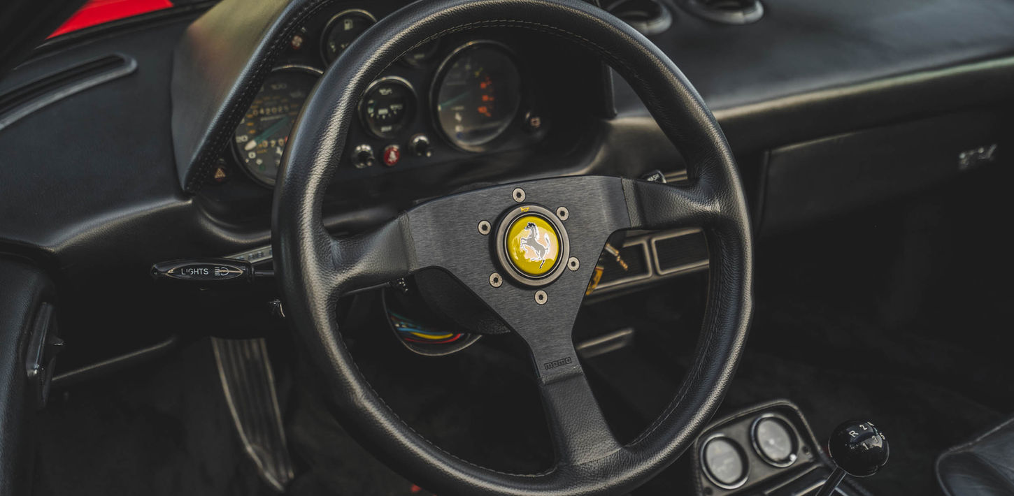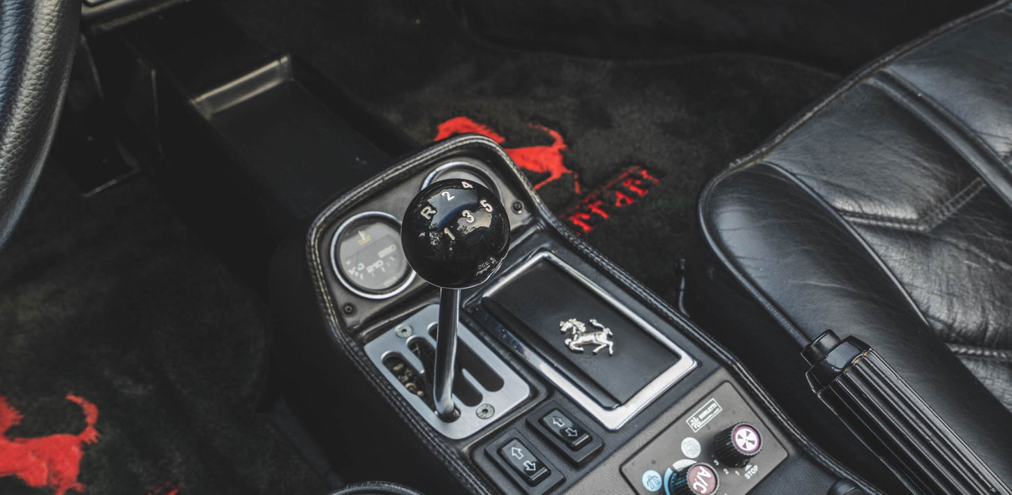 The leather-wrapped MOMO steering wheel frames Veglia Borletti instrumentation consisting of a 180-mph speedometer and a tachometer with a 7,700-rpm redline as well as gauges for fuel level, coolant temperature, and oil pressure. An analog clock and oil-temperature gauge are housed in the center console. The six-digit odometer shows 42k miles, approximately 300 of which were added under current ownership.