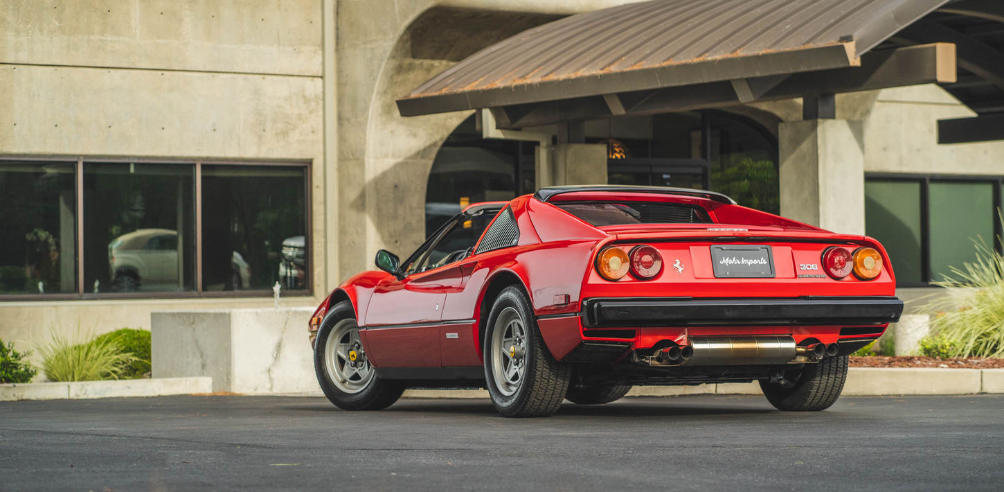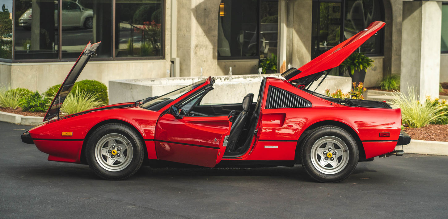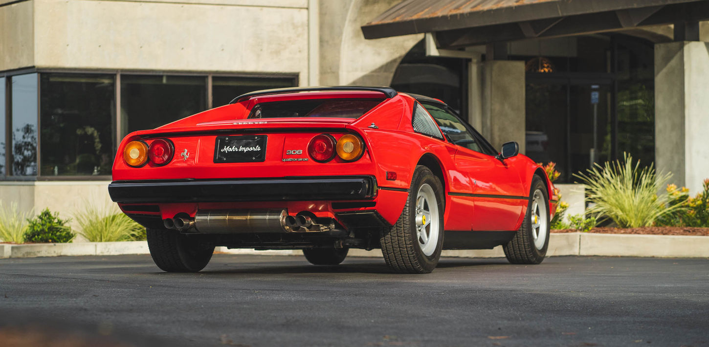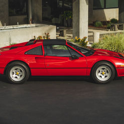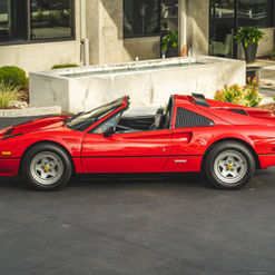 This 1983 Ferrari 308 GTS Quattrovalvole is powered by a 2.9-liter quad-cam V8 paired with a five-speed manual transaxle and is finished in red over black leather upholstery. Equipment includes a limited-slip differential, a removable roof panel, pop-up headlights, air conditioning, a gated shifter, electric windows, and 390mm alloy wheels with Michelin TRX tires as well as an aftermarket Sony CD stereo, carbon-fiber doorsill plates, and intake and exhaust components. The car was acquired by its current owner in September 2020 and was listed on BaT in September 2021. This 308 GTS Quattrovalvole has 42k miles and is now offered on dealer consignment in California with an owner’s manual, a tool kit, spare parts, partial service records, a clean Carfax report, and a clean title.