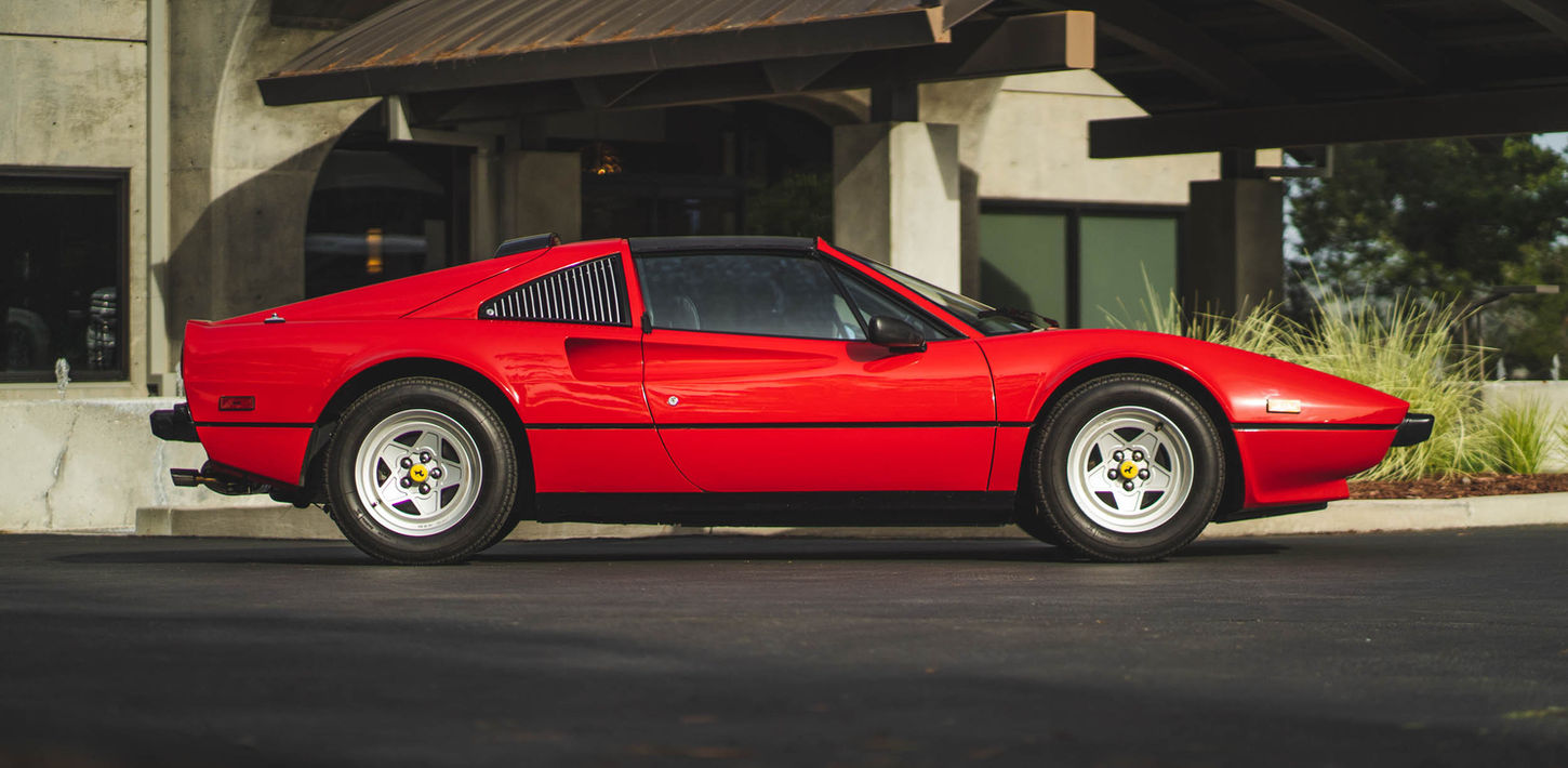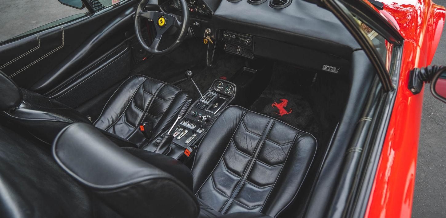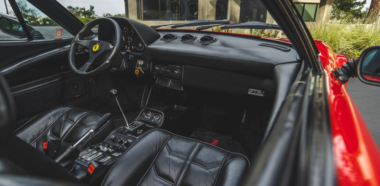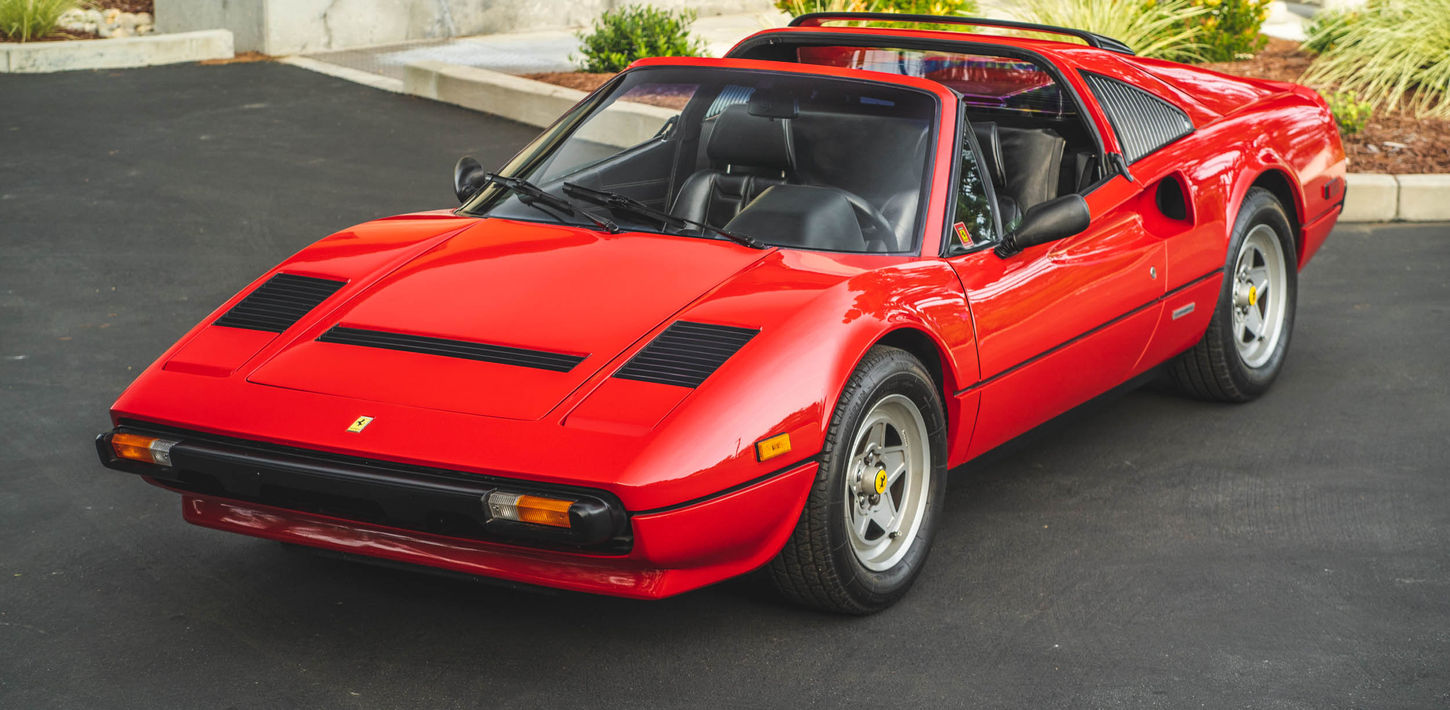 This 1983 Ferrari 308 GTS Quattrovalvole is powered by a 2.9-liter quad-cam V8 paired with a five-speed manual transaxle and is finished in red over black leather upholstery. Equipment includes a limited-slip differential, a removable roof panel, pop-up headlights, air conditioning, a gated shifter, electric windows, and 390mm alloy wheels with Michelin TRX tires as well as an aftermarket Sony CD stereo, carbon-fiber doorsill plates, and intake and exhaust components. The car was acquired by its current owner in September 2020 and was listed on BaT in September 2021. This 308 GTS Quattrovalvole has 42k miles and is now offered on dealer consignment in California with an owner’s manual, a tool kit, spare parts, partial service records, a clean Carfax report, and a clean title.