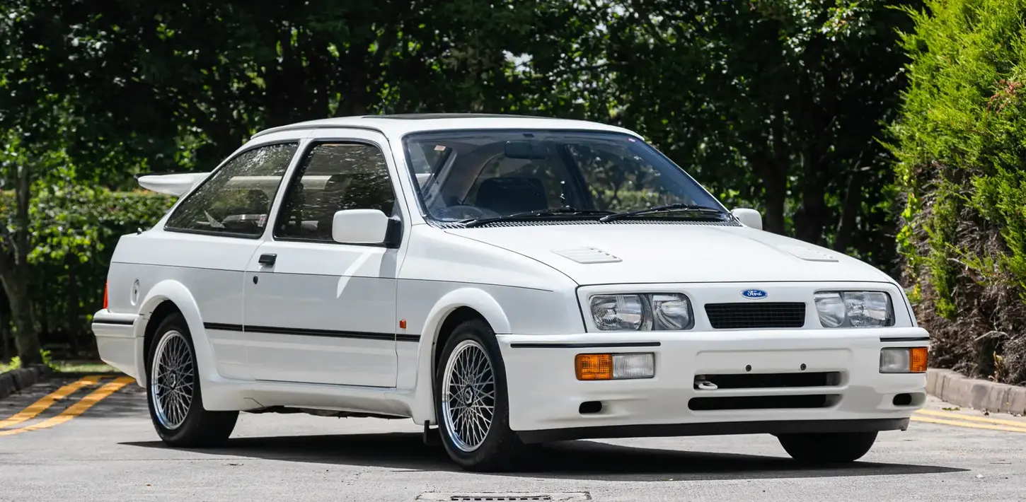 Finished in Ford Motorsport Diamond White with the traditional grey cloth interior, this very special, UK-supplied, right-hand drive example remains in truly remarkable, original condition. The warranted mileage is just 27,715, corroborated by older MOTs and service stamps in the dealer service record. First registered on 24th November 1986, the car was subsequently sold twice in its first four years before being purchased by its next enthusiast vendor who retained it for the next 32 years.