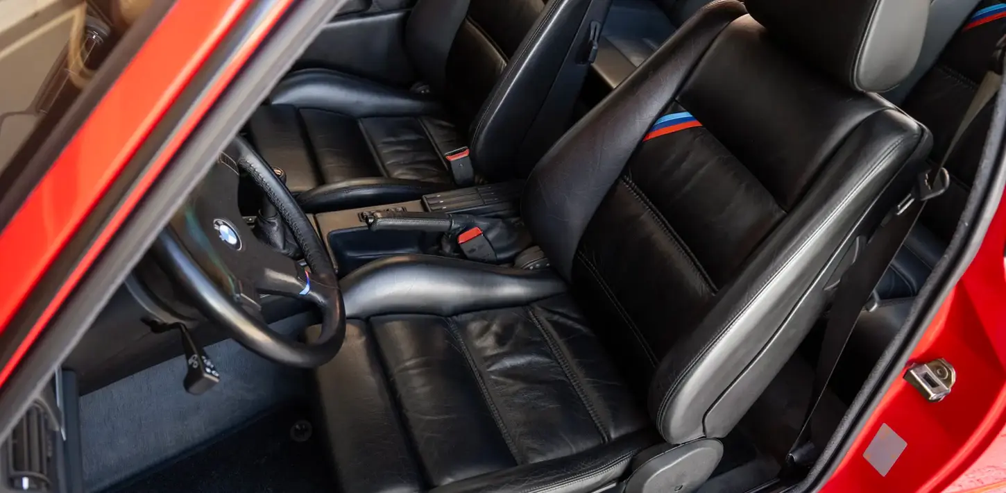 In 2022, the consignor discovered the car in Padua, Italy, not far from the shop of famed Ferrari competition builder and restorer Christiano Michelotto’s operations. Being friends with Michelotto, the consignor enlisted him to check out the M3. Upon inspection, he reported it to be the best example he had ever seen and promptly assisted the consignor with its purchase, completed in November 2022. Although it was in remarkable condition overall, Michelotto—with the consignor’s blessing—recommissioned the car mechanically and cosmetically to bring it fully up to his obsessive standards. These efforts, carried out by Michelotto Automobili, included replacing the water pump, valve cover gaskets, belts, engine and gearbox mounts, fuel and brake lines, fuel pressure regulator, cooling hoses, damper joints, and exhaust muffler. In addition, the brake calipers and dampers were overhauled, all fluids were replaced, and a battery master switch was installed. Though the paint remained in excellent condition, Michelotto insisted that the bumpers and rocker panels be sanded to remove their subtle orange-peel texture and repainted to a superior smooth finish in factory-correct Misano Red for a perfect presentation. Following this, the car was fully detailed inside and out, including cleaning all mechanical components, polishing the tailpipes, treating the plastic switchgear, and reconditioning the leather.