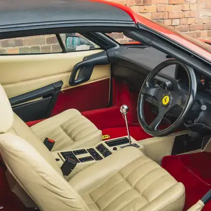 Beneath the skin, the tubular steel chassis remained much as before, with all-round independent suspension by double wishbones, four-wheel servo-assisted disc brakes and aluminium-alloy wheels, though the latter were increased in size. The interior too had come in for subtle revision and now featured improved instruments, switchgear and heating. Pininfarina built two variants of this mid-engine sportscar, the Gran Turismo Berlinetta Coupé and the Gran Turismo Spider (GTS) featuring a removable Targa-top, offering an exhilarating open-air driving experience and affording the driver and their fortunate passenger unbridled access to the unmistakable howl of the Ferrari V8. Production ended in 1989 and by then some 7,412 GTS and GTB variants had rolled out of Maranello, with just 543 GTS cars supplied to the UK in right-hand drive.