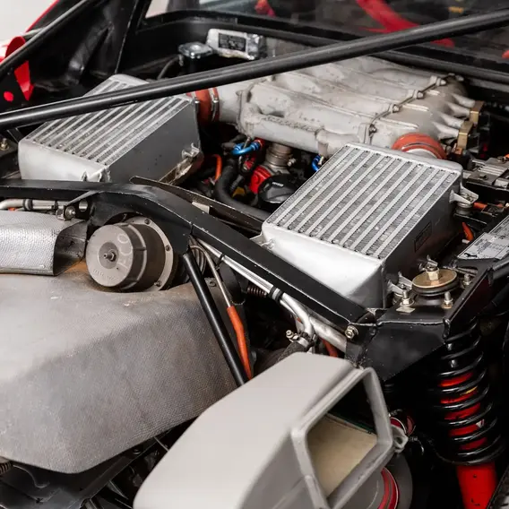 This beautifully presented F40 GT claims important ownership provenance and a successful three-year career in period Italian racing, as well as a more recent life of fastidious upkeep by a short chain of doting owners, including certification by Ferrari Classiche. Chassis number 85690 was purchased new by Pierre Alexander Popoff, a close friend of Enzo Ferrari who was also responsible for designing the Mugello racing circuit. This prominent member of the Ferrari Club Italia desired to race an F40 in the Italian GT Championship, and to this end he took delivery of the car at the Maranello factory in July 1990. The F40 GT was initially prepared for racing by Adriano Nicodemi, although that responsibility soon passed to the highly respected Michelotto, who built it to CSAI-GT specifications and whose resume included preparing the Lancia Stratos rally cars and the Ferrari 308 IMSA racers.