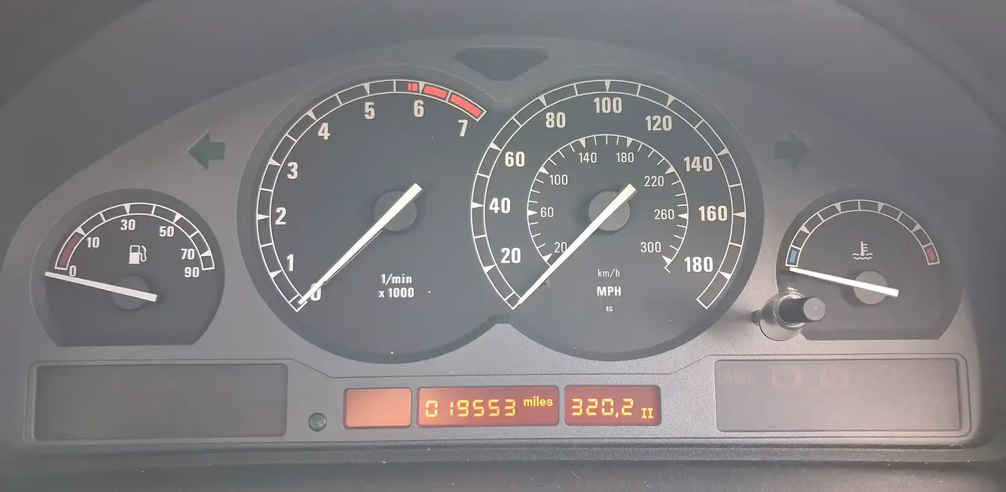 Imported to the UK in 2002, the BMW has since enjoyed only light, fair-weather use. Its specification is both extensive and desirable, featuring Automatic Stability Control, electric memory seats with lumbar support, electrically adjustable steering column, auto-dimming rear-view mirror, electric sunroof and rear blind, headlamp wash system, and its correct turbine-style 16-inch alloy wheels—all of which function as intended and present superbly.