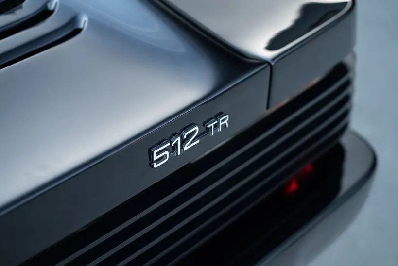 The Testarossa received minor updates throughout its relatively long production run, and then a major update for the 1992 model year to turn it into the 512 TR. Virtually every system of the car was substantially re-engineered, largely with the goal of addressing complaints that the original Testarossa had forgone a little too much of the visceral excitement that should define a Ferrari. The engine was changed from Bosch CIS to Motronic, the valves enlarged, and the compression ratio increased. The exhaust system was also redesigned and the resulting engine gained approximately 50hp and a broader power curve while also becoming dramatically more responsive and sounding much better. The engine was also moved forward and down in the car, a significant enough change to improve the weight distribution by one percentage point at each axle. The suspension was also revised, the steering ratio quickened, and lower profile tires fitted to go with new 18 inch wheels, an increase of two inches. The brakes were also enlarged and fitted with cross drilled rotors.