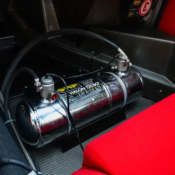 Because IMSA and FIA regulations limited weight reduction, the most significant modifications were made to the engine, which featured larger Behr intercoolers, revised camshafts, a modified fuel management system, and an increase in turbo boost, ultimately resulting in a shocking increase to 720 horsepower (a net gain of 242 horsepower). This impressive uptick in power was complemented by numerous chassis considerations, including larger Brembo disc brakes, wider wheels with softer tires, and a lowered ride height. Finally, the bodywork was aerodynamically massaged with a large front spoiler, a revised front hood with much larger cooling vents, underbody venturi, and a huge adjustable rear wing, while the interior was revised with racing harnesses and a competition instrument panel.