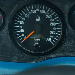 The interior of this Diablo is equally as eye-catching as the exterior, with bright blue leather covering the seats, center console, and dashboard. A 4-spoke airbag steering wheel sits in front of the driver and frames a simple set of white-on-black gauges, with a speedometer that goes all the way to 360 km/h. In the center stack sits an original Alpine “3D Shuttle” stereo head unit, a top of the line unit when this car was new, with a 3 disc changer in dash. Additionally, a digital climate control system is fitted as well as a button set with numbers 1-4, that is there to adjust the firmness of the suspension.