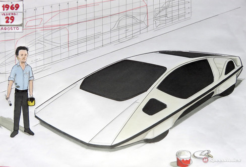 And so August 1969 arrived, and I decided to give some three-dimensional shape to my idea. I ordered eight square metres of polystyrene, unloaded it and started to scratch and saw, until I had a car in scale 1:1.